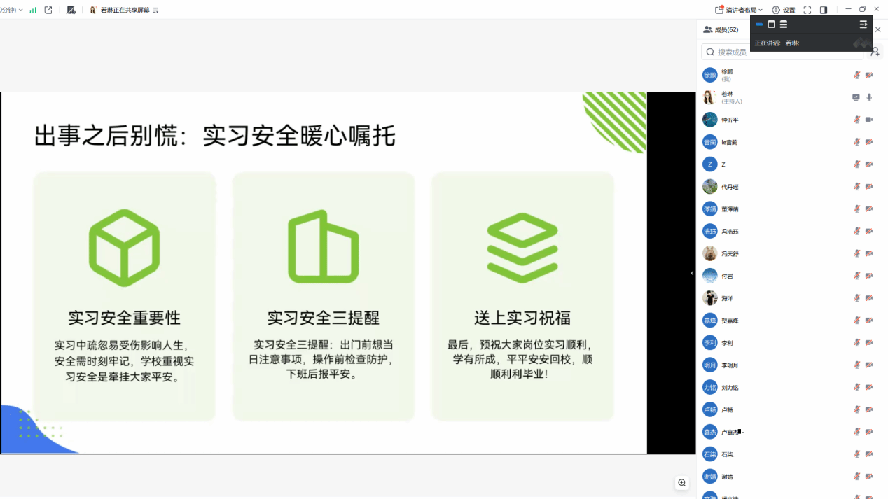 为切实增强学生实习期间的安全防范意识,提升自我保护能力,确保实习工作顺利开展,4月14日下午5点,管理工程学院电子商务和市场营销专业召开了线上实习安全教育大会。学院负责人、全体实习指导老师及全体即将踏上实习岗位的学生参加了会议。